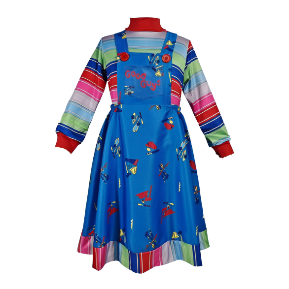 This Halloween costume creates a chilling look inspired by classic horror themes. The striped top, blood-splattered overalls, and bold accessories combine for a menacing doll-like style. Ideal for haunted houses, Halloween parties, or cosplay, it delivers a complete transformation that stands out in any spooky setting.