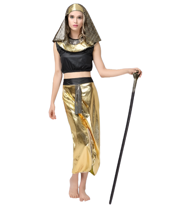 This women’s Cleopatra costume channels the power and majesty of ancient royalty. Featuring a sleeveless maxi dress with side slits, it comes complete with a jeweled belt, collar, wristbands, and headpiece for an instantly regal look. Ideal for Halloween parties, themed events, or stage performances, this costume ensures all eyes are on the queen of the Nile.