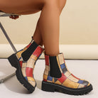 These women's patterned Chelsea winter boots feature a striking design that adds visual interest to any outfit. The ankle-length cut with elastic side panels allows for easy slip-on wear, while the sturdy sole ensures reliable grip on different surfaces. Suitable for work, casual outings, or weekend events, these boots combine practicality with standout style.