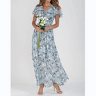 This women's summer formal floral wedding guest dress brings effortless style to any warm-weather occasion. The flowing maxi length and airy design allow ease of movement while maintaining a graceful presence. From weddings to garden parties, this dress is a versatile choice for summer events.