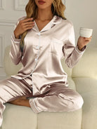 This pajama set features a collared button-down top paired with straight-leg bottoms, creating a structured and orderly appearance for at-home wear. The long-sleeve design and balanced proportions give it a composed visual flow, making it suitable for evening routines, downtime, or overnight wear without relying on decorative excess.