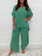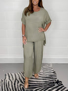 Women's Short Sleeves Round Neck Stylish Set | Wide Leg Trouser