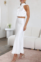 Women's Sleeveless High Neck Maxi Skirt Set | Two Piece